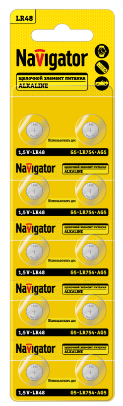 Элемент питания алкалиновый "таблетка" 95 669 NBT-12 (LR48 AG5 LR754 BP10) (блист.10шт) Navigator 95669 - smartlife-ural.ru – Екатеринбург