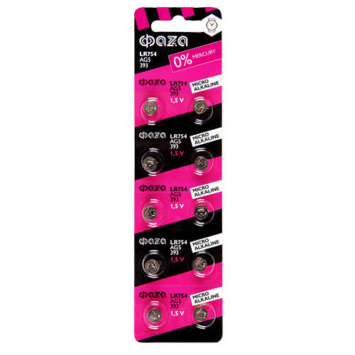 Элемент питания алкалиновый "таблетка" LR48/LR754/AG5/G5 1.5В BL-10 (уп.10шт) ФАZА 5002586