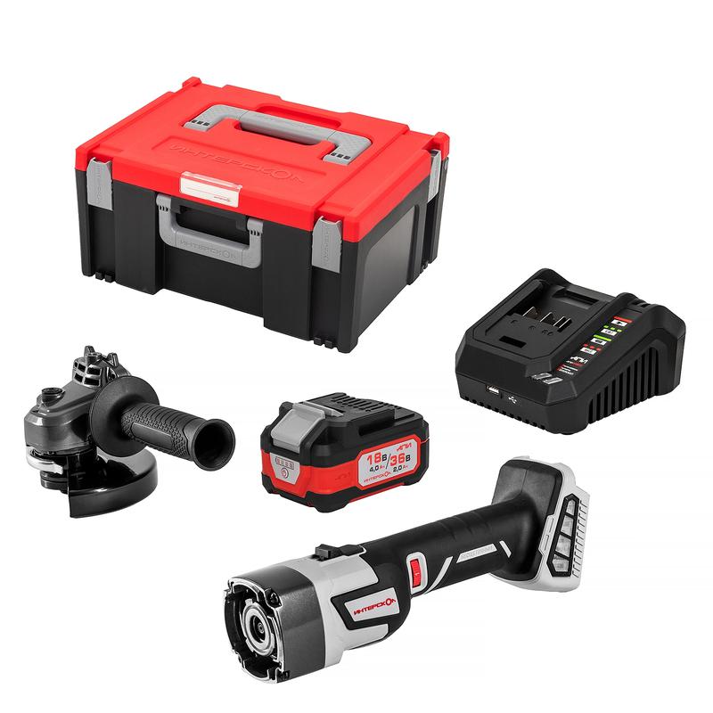 Машина шлифовальная угловая аккумуляторная УШМ-125/36ММ МультиМАКС 36В с бесщеточным (вентильным) двигателем + МультиБОКС 150 ИНТЕРСКОЛ 900.2.1.41
