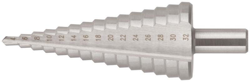Главная/ Каталог / Электроинструменты и аксессуары для них / Сверло / Сверло по металлу ступенчатое 4-32мм 15 ступеней HSS КУРС 36405