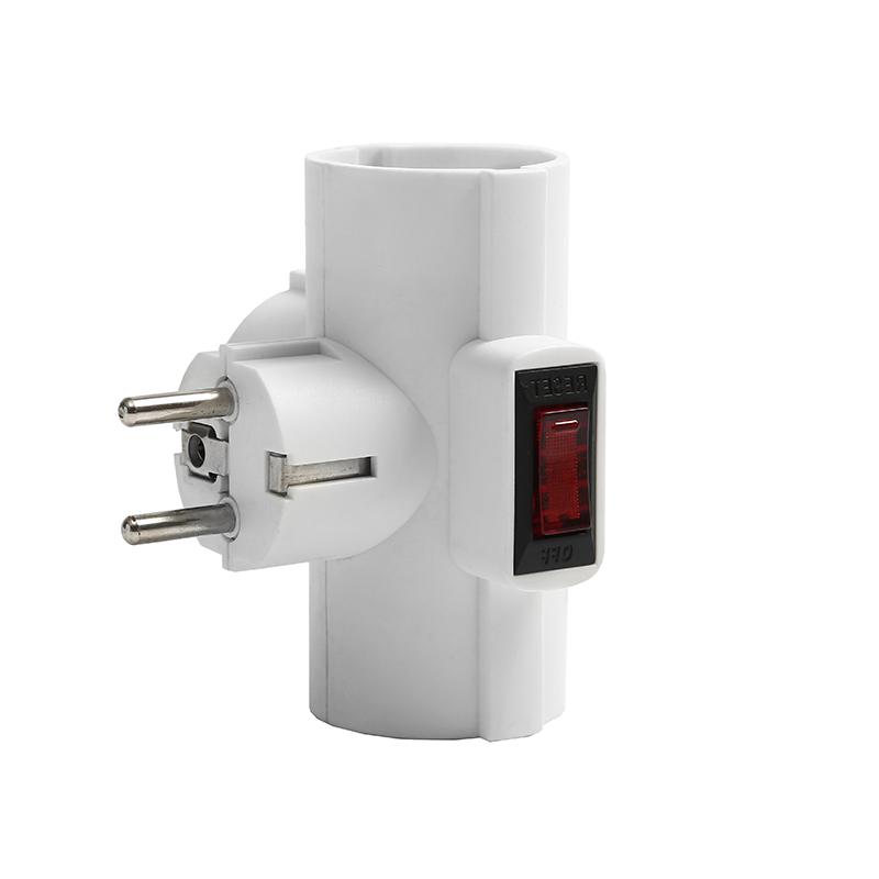 Разветвитель 3-м Т-образный с выключателем с заземл. 16А 3500Вт 250В бел. DОМТОК 2663
