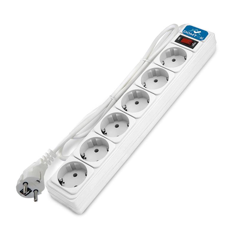 Удлинитель с сетевым фильтром 6х3м с заземл 10А IP20 2.2кВт ПВС 3х1 с выкл. бел. DOMTOK 2516