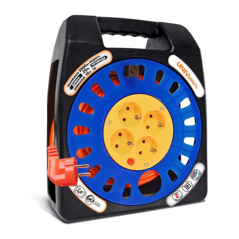 Удлинитель в закрыт. корпусе 4х20м 16А IP20 У16-012 ПВС 3х1.5 термозащита защ. шторки UNIVersal 9633881