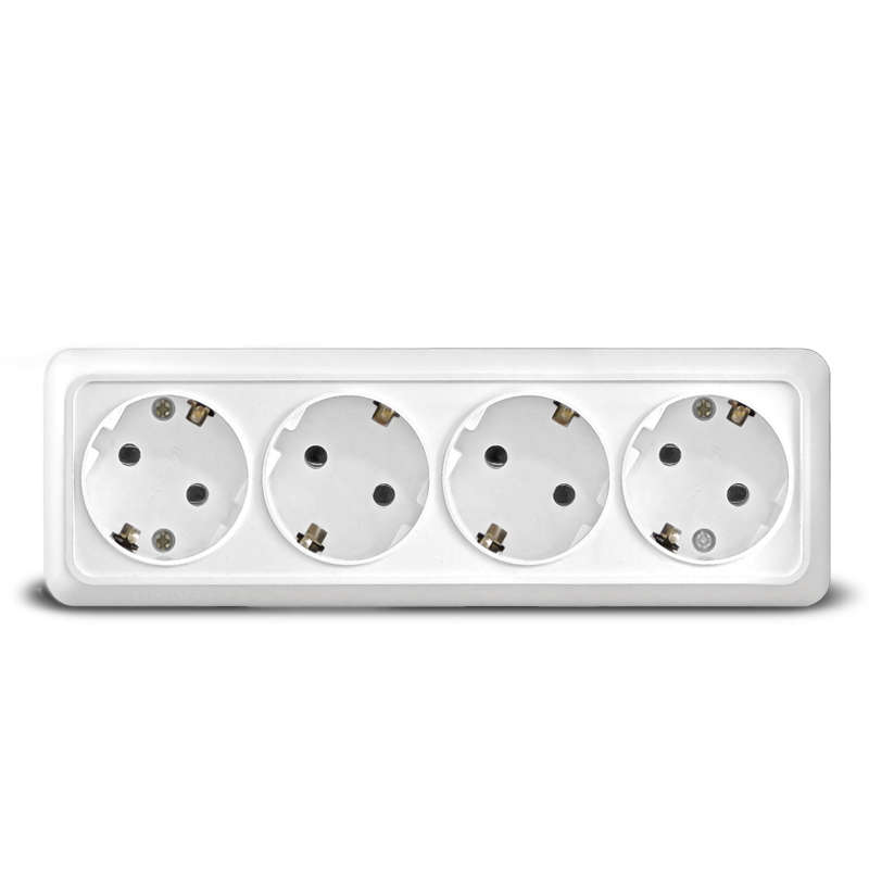 Розетка 4-м ОП Олимп с заземл. бел. UNIVersal 1163 представлена потребителю в серии "Олимп". Серия "Олимп" для открытой установки сочетает в себе функциональность с практичностью. Изделия данной серии удачно вписываются в интерьер любого помещения и производят приятное впечатление. Корпус представляет собой форму из пластика. Контактная группа изделий изготовлена из латуни. Монтируется на поверхность стены. Рекомендованы для жилых помещений и административных зданий. Срок службы составляет 5 000 циклов включения/отключения.