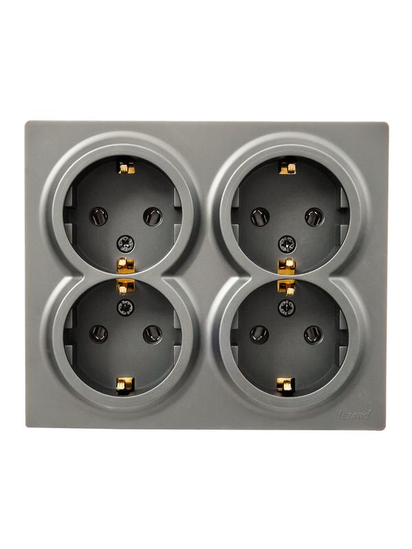 Розетка 4-м ОП LETO с заземл. закрытый корпус ПБТ платина LEZARD 752-3500-127BDP