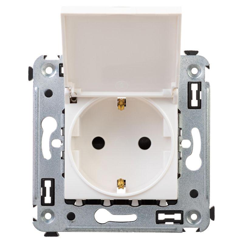 Розетка 2P+E с крышкой – это однофазная розетка с заземлением. Изделие предназначено для скрытого монтажа в стену и может применяться как в жилых, так и в коммерческих или производственных помещениях. Крышка защищает механизм от загрязнения и попадания влаги в то время, когда розетка не используется. Номинальное напряжение – 230 В, номинальный ток – 16 А. Материал: металл, термопласт. Пластиковые элементы устройства имеют благородный белый оттенок "Белое облако", который ненавязчиво вписывается в интерьер любой цветовой гаммы и прекрасно сочетается с любыми оттенками. Производитель оставляет за собой право вносить во внешний вид изделия изменения, которые не влияют на его функционал, безопасность и надежность.