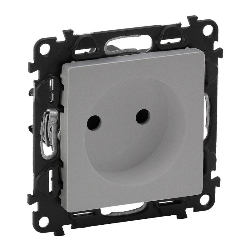 Розетка 1-м СП Valena Life 16А IP20 250В 2P защ. шторки безвинтов. клеммы с лицев. панелью механизм алюм. Leg 753616