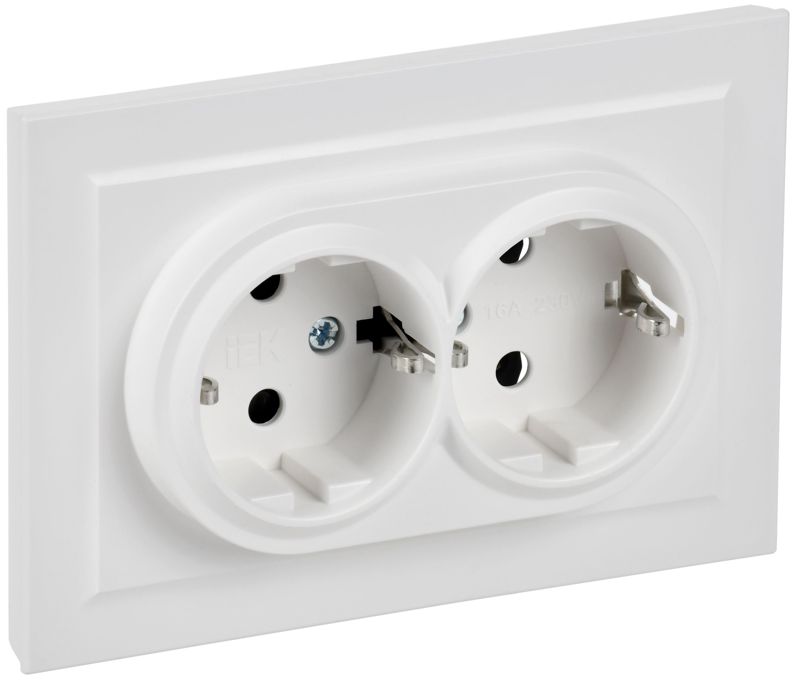 Главная/ Каталог / Электроустановочные изделия / Розетка штепсельная / Розетка 2-м СП BRITE РС12-3-БрАБ 16А в сборе с заземл. без защ. шторок арктич. бел. IEK BR-R21-16-K91-F