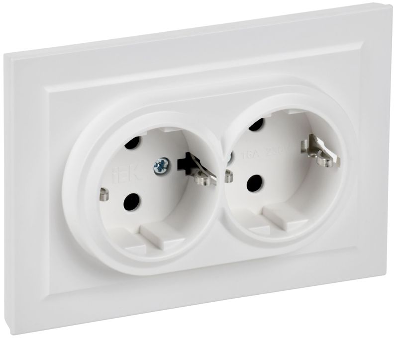 Главная/ Каталог / Электроустановочные изделия / Розетка штепсельная / Розетка 2-м СП BRITE РСш12-3-БрАБ 16А в сборе с заземл. защ. шторки арктич. бел. IEK BR-R24-16-K91-F