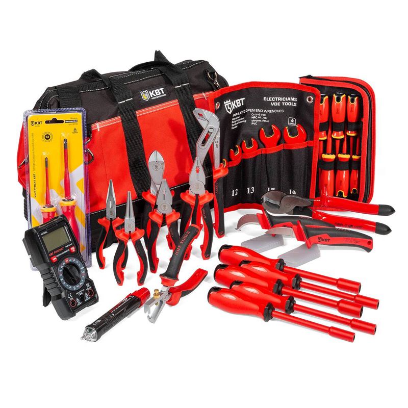 • Состав набора: • ножницы диэлектрические НКи-16 ЭКСПЕРТ • нож диэлектрический НМИ-01 ПРОФИ • нож диэлектрический НМИ-02 ПРОФИ • набор диэлектрических отверток НИО-2202 PZ-FL СЛИМ: • отвертка диэлектрическая PZ/FL1x80 • отвертка диэлектрическая PZ/FL2x100 • набор диэлектрических отверток НИО-2207 СЛИМ: • отвертка диэлектрическая шлиц 2.5х75 • отвертка диэлектрическая шлиц 4.0х100 • отвертка диэлектрическая шлиц 5.5х125 • отвертка диэлектрическая шлиц 6.5х150 • отвертка диэлектрическая PZ1x80 • отвертка диэлектрическая PZ2x100 • отвертка индикаторная • набор торцевых диэлектрических отверток НИО-2205-Т ПРОФИ: • отвертка диэлектрическая c внутренним шестигранником 5.5 мм • отвертка диэлектрическая c внутренним шестигранником 7 мм • отвертка диэлектрическая c внутренним шестигранником 8 мм • отвертка диэлектрическая c внутренним шестигранником 10 мм • отвертка диэлектрическая c внутренним шестигранником 13 мм • набор диэлектрических однорожковых ключей НИИ-20 ЭКСПЕРТ: • ключ диэлектрический 10 мм • ключ диэлектрический 12 мм • ключ диэлектрический 13 мм • ключ диэлектрический 17 мм • ключ диэлектрический 19 мм • пассатижи диэлектрические СТАНДАРТ 160 мм • пассатижи диэлектрические СТАНДАРТ 180 мм • длинногубцы диэлектрические СТАНДАРТ 160 мм • бокорезы диэлектрические СТАНДАРТ 180 мм • стриппер диэлектрический СТАНДАРТ 160 мм • круглогубцы диэлектрические СТАНДАРТ 160 мм • клещи переставные диэлектрические СТАНДАРТ 250 мм • мультиметр цифровой KT 830L PROLINE • бесконтактный детектор напряжения КТ 100 PROLINE • сумка с резиновым дном C-01 ПРОФИ • Габаритные размеры сумки: 430х320х230 мм • Вес набора с сумкой: 7.0 кг