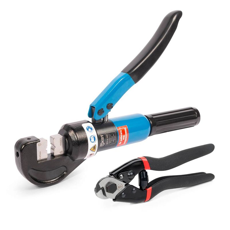 • Комплект предназначен для опрессовки и резки стальных тросов • В комплекте: • ручной гидравлический пресс ПГР-6т • набор из 5 сменных матриц с круглым профилем • тросорез ТРК-5 • ремкомплект (уплотнительные кольца) • прочный пластиковый кейс • Размеры опрессовываемых тросов: 1.5/2/3/4/5/6 мм • Резка стальных тросов O до 5 мм • C-образная кованая рабочая голова • Безлюфтовые матрицы с фиксирующими штифтами • Клапан ручного сброса давления • Кованая голова придает инструменту особую прочность и надежность • Максимальное усилие: 5 т • Всесезонное гидравлическое масло ВМГЗ гарантирует работу инструмента при температуре не ниже -15 °С • Вес комплекта/инструмента: 2.9/1.7 кг • Длина инструмента: 295 мм • Габариты кейса: 350х180х80 мм