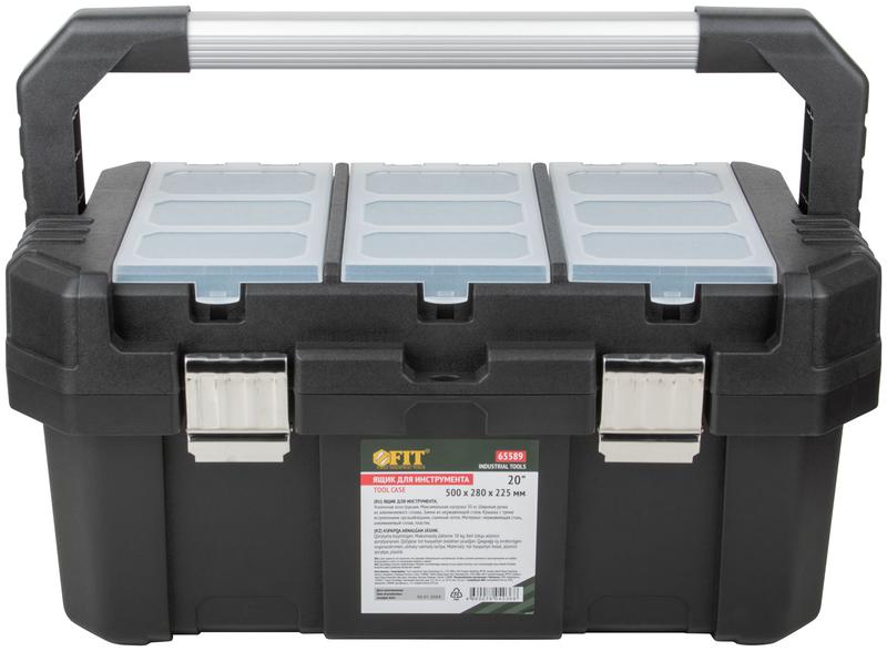 Ящик для инструмента пластиковый 20дюйм 500х280х225мм металл. замки. алюм. ручка FIT 65589