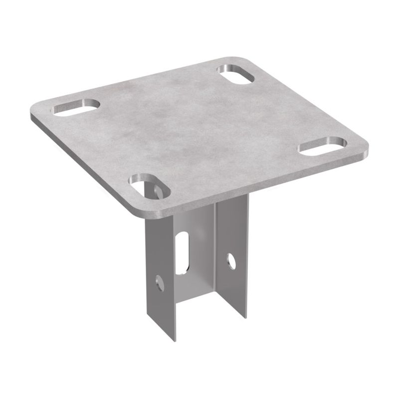 Система подвесов изготовленных из стали с защитным покрытием по методу Сендзимира – это изделия, на которых защитное цинковое покрытие было нанесено на листовую сталь перед изготовлением. Толщина защитного покрытия варьируется от 10 до 22мкм. Климатическое исполнение изделий УХЛ2, что предусматривают эксплуатацию в помещении и под навесом, при температуре эксплуатации от -80 до +150°С. Опора вертикальная для стойки 35х30 – это элемент крепления, необходимый для монтажа сборной потолочной стойки с пяткой на базе стойки потолочной для средних нагрузок 35х30 любой длины. Опора выполнена из П-образного профиля и квадратного основания, которые сварены между собой. П - образный профиль и квадратное основание позволяют крепить изделие к потолку или полу.