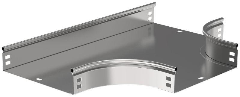 Разветвитель Т-образный плавный предназначен для организации Т-образного ответвления кабельной трассы. Крышка аксессуара в комплект не входит. Аксессуар изготовлен из стали горячего цинкования методом Сендзимира (защитный слой цинка не менее 10 мкм).