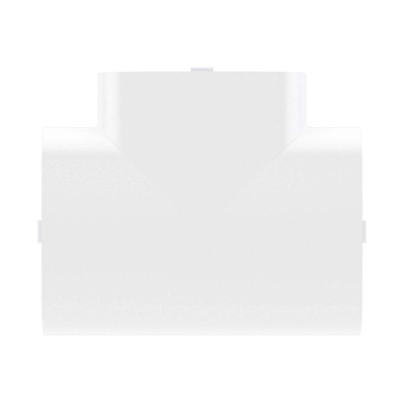 Тройник используется для маскировки мест Т-образных стыков. Аксессуар совместим с кабель-каналами 90х50 мм. Материал: накладка – АБС-пластик; база и разделители – ПП. Цвет - белый.