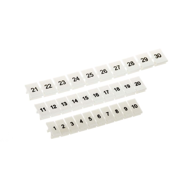 Маркировка для винтовых клемм "Nuputuk" и для фронтальной маркировки клемм VPR. Ширина 6 мм, белая с черной печатью от 1 до 10, вертикальная ориентация, 1 шт. - полоса из 10 маркеров.