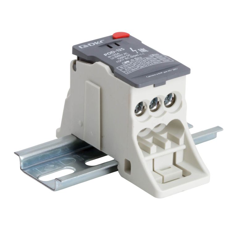 Главная/ Каталог / Колодки клеммные / Проходная клеммная колодка / Блок распределительный винтовой зажим 1х35кв.мм 7х16кв.мм DKC POD-125