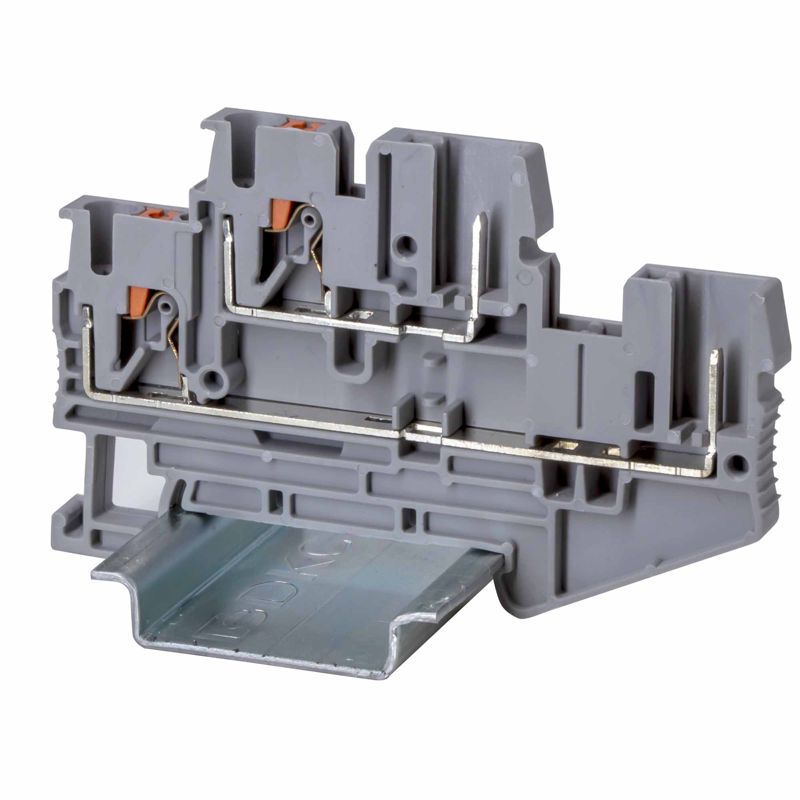 Главная/ Каталог / Колодки клеммные / Проходная клеммная колодка / Клемма двухуровневая проходная под вставной штекер зажим push-in; 4 точки подключения; 2.5кв.мм сер. DKC VPRTT-2.5-2P