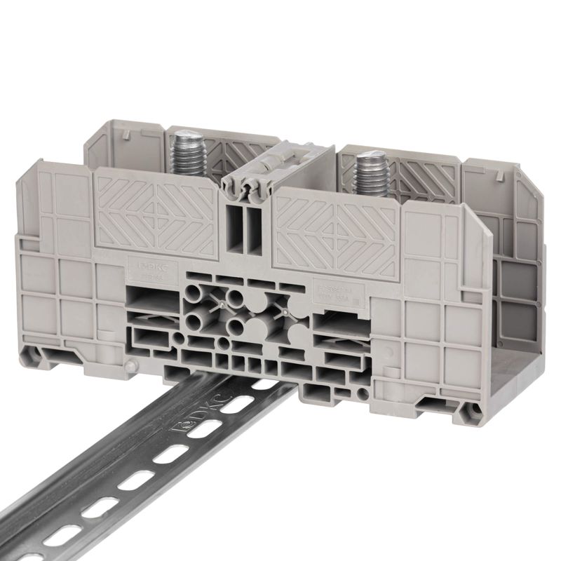 Клемма проходная с болтовым зажимом предназначена для коммутации 2 проводников. Монтаж на DIN-рейку OMEGA или панель. Температура эксплуатации от -40 до +105°C. Корпус выполнен из ПА 6.6 с классом горючести V0 UL-94. Серый цвет, 2 точки подключения, 185 мм2. Монтаж перемычек на шпильку клеммы. Габариты (В?Ш?Г) 79?163?55 мм.