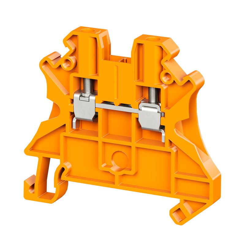 Проходная клемма с винтовым зажимом предназначена для соединения двух проводников. Монтаж на DIN-рейку OMEGA. Температура эксплуатации от -40 до +105 °C. Корпус выполнен из ПА 6.6 с классом горючести V0 UL-94. Оранжевый цвет, 2 точки подключения, 2.5 мм2. 2 канала для вставных перемычек. Габариты (В?Ш?Г) 47,5?53?5,2 мм.