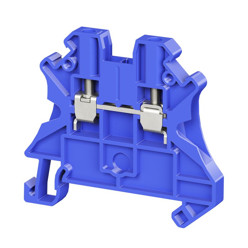 Проходная клемма с винтовым зажимом предназначена для соединения двух проводников. Монтаж на DIN-рейку OMEGA. Температура эксплуатации от -60 до +105 °C. Корпус выполнен из ПА 6.6 с классом горючести V0 UL-94. Синий цвет, 2 точки подключения, 2.5 мм2. 2 канала для вставных перемычек. Габариты (В?Ш?Г) 47?53,3?5,2 мм.