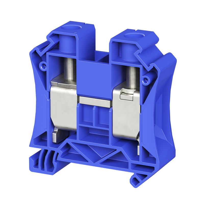 Проходная клемма с винтовым зажимом предназначена для соединения двух проводников. Монтаж на DIN-рейку OMEGA. Температура эксплуатации от -60 до +105°C. Корпус выполнен из ПА 6.6 с классом горючести V0 UL-94. Синий цвет, 2 точки подключения, 35 мм2. 1 канал винтовых перемычек. Габариты (В?Ш?Г) 59,5?56,4?16 мм.
