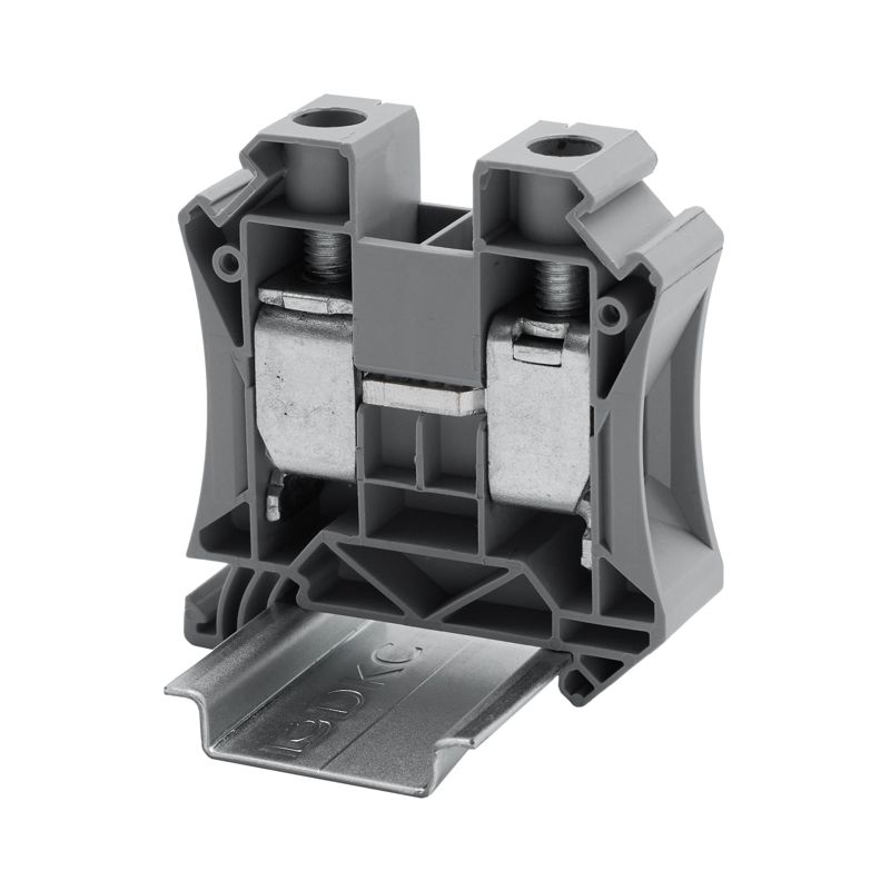 Проходная клемма с винтовым зажимом предназначена для соединения двух проводников. Монтаж на DIN-рейку OMEGA. Температура эксплуатации от -60 до +105°C. Корпус выполнен из ПА 6.6 с классом горючести V0 UL-94. Серый цвет, 2 точки подключения, 35 мм2. 1 канал винтовых перемычек. Габариты (В?Ш?Г) 59,5?56,4?16 мм.