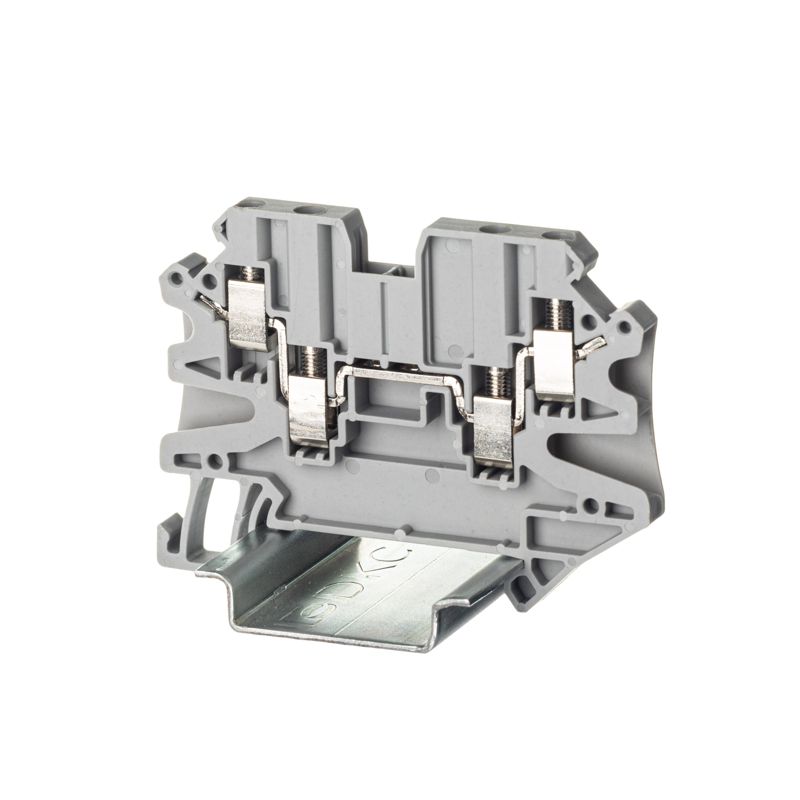 Проходная клемма с винтовым зажимом предназначена для соединения четырех проводников. Монтаж на DIN-рейку OMEGA. Температура эксплуатации от -40 до +105°C. Корпус выполнен из ПА 6.6 с классом горючести V0 UL-94. Серый цвет, 4 точки подключения, 2.5 мм2. 2 канала для вставных перемычек. Габариты (В?Ш?Г) 47,5?65,4?5,2 мм.