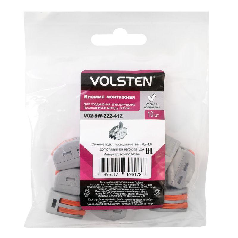 Клемма строительно-монтажная СМК 2 пр. до 4мм 32А 450 В 10шт V02-9W-222-412 сер. Volsten 15218