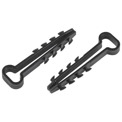 Дюбель-хомуты ЭРА предназначены для крепления круглых и плоских проводников, жестких и гибких труб на несущих строительных поверхностях, испытывающих статическую нагрузку. Могут быть установлены в любой материал: бетон, кирпич, дерево, ДСП, фанеру, газобетон и т.д., а также в стены, выполненные из пеноблоков и природного камня. Материал изделий - полиэтилен выского давления, благодаря чему они отличаются прочностью и рассчитаны на высокие нагрузки. Установка дюбель-хомута довольно проста. Достаточно лишь просверлить отверстие, соответствующее диаметру дюбеля, затем надеть дюбель на провод и вставить в отверстие, приложив небольшое усилие. Зубчики, находящиеся на дюбеле, упираются в стенки отверстия и обеспечивают надежную фиксацию, не позволяя крепежу выскользнуть из него даже при значительных усилиях. В ассортименте 2 типа изделий: для круглого и для плоского кабеля. Особенности изделий: - Быстрый монтаж без дюбелей и шурупов. - Надежная фиксация проводника в стене благодаря увеличенным зубьям. - Материал: полиэтилен выского давления, не поддерживает горение.
