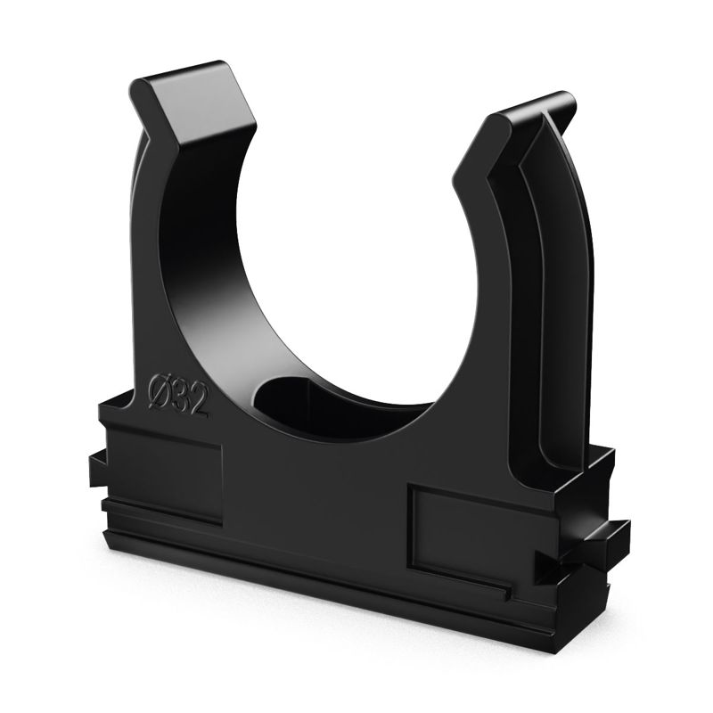 Предназначена для крепления гладких труб ПВХ или гофрированных труб одного диаметра к поверхности стен, потолков, полов или перегородок. Для монтажа предусмотрено технологическое отверстие под дюбель или саморез. Для удобства блочного монтажа состыковываются друг с другом с помощью специальных фиксаторов типа «ласточкин хвост».
