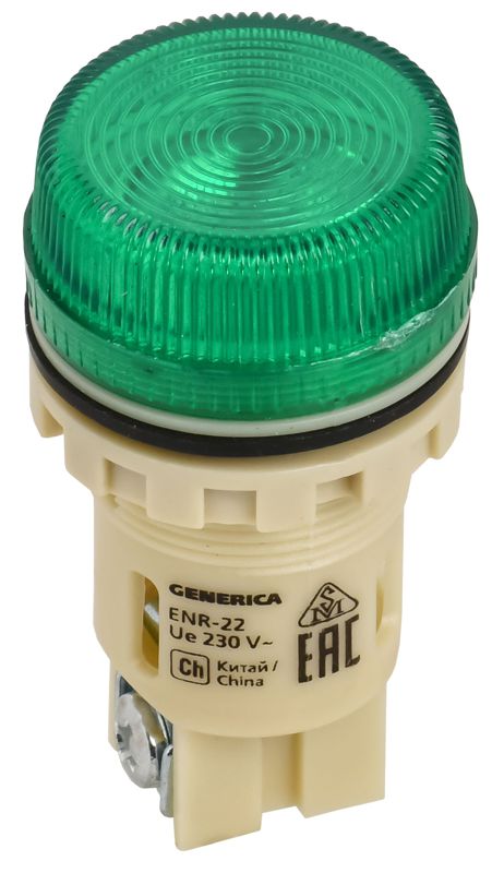 Лампа сигнальная ENR-22 d22мм 240В зел. цилиндр неон GENERICA BLS40-ENR-K06