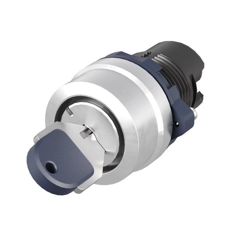 Главная/ Каталог / Оборудование низковольтное / Элемент передний переключателя / Головка переключателя с ключом на 2 положения с возвратом стандартная ручка алюм. черн. DKC M22S-KM2A