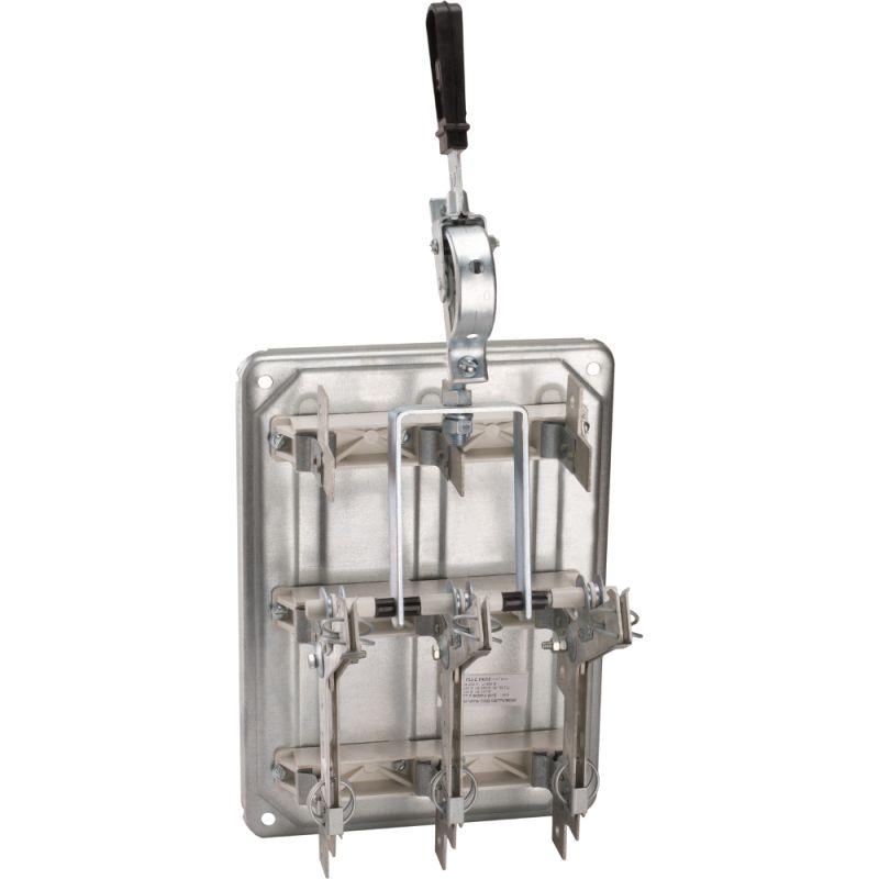 Разъединитель 3 полюсный на номинальный ток 250 А, номинальный условный ток короткого замыкания Iq 20 (кА), где установлена центральная рукоятка, а максимальное сечение присоединяемых медных шин составляет 120 кв. мм.