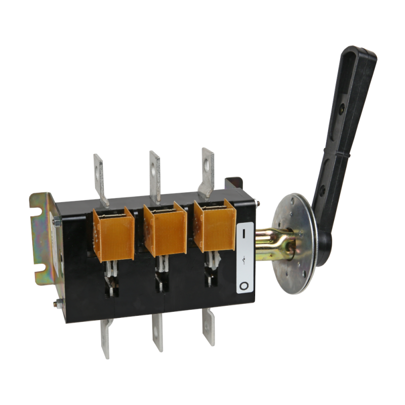 Выключатель-разъединитель 3 полюсный на номинальный ток 250 А, в котором установлена съемная рукоятка.