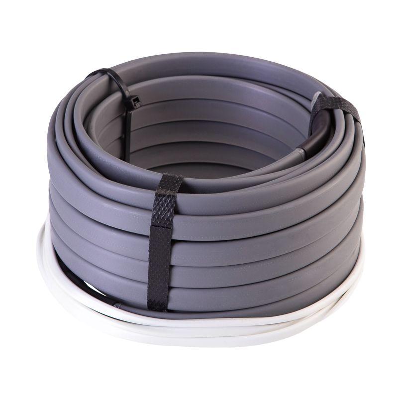 Комплект саморегулирующегося кабеля PROconnect мощностью 16 Вт/м используется для профилактики промерзания и образования наледи в бытовых трубопроводах, на счетчиках воды, вентилях и так далее. Подходит для использования как в помещениях, так и на улице. Нагревательный кабель соединен с питающим кабелем, на конце которого находится евровилка для подключения в розетку. В нормальных условиях его температура не превышает 65 °C. Монтаж кабеля производится на поверхности металлической или пластиковой трубы, под теплоизоляцией. Фиксация кабеля обеспечивается алюминиевым скотчем или теплостойкой лентой. Может пересекаться сам с собой. Подключение осуществляется через сеть 220 В.