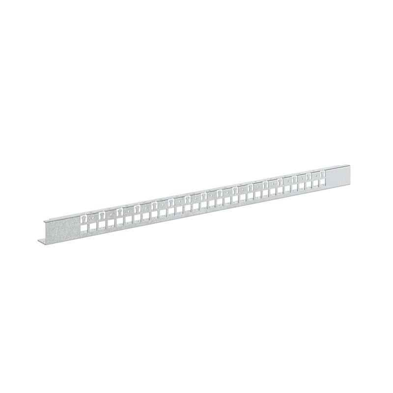 Рейка для фиксации кабеля для корпусов CQE N предназначена для аккуратной укладки и надежной фиксации кабелей внутри шкафов серии CQE N. Изготовлена из оцинкованной стали толщиной 2 мм с перфорацией и шагом 25 мм, что позволяет использовать различные крепежные элементы: стяжки, скобы и др.. Устанавливается в основание корпуса, обеспечивая оптимальное использование пространства и удобство обслуживания кабельных трасс. В комплект входят 2 рейки и полный набор метизов для монтажа. Ширина: 800 мм.