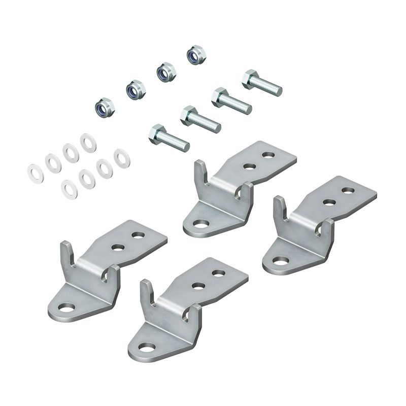 Кронштейны для крепления корпусов ST, STX, STE, STEX, SDE на стену. Изготавливается из оцинкованной стали толщиной 3 мм. Возможность вертикального или горизонтального расположения кронштейнов при сохранении степени пыле- и влагозащиты. Максимальная статическая нагрузка на 4 кронштейна 400 кг. Комплект поставки: 4 кронштейна, удлиненные болты и гайки с самофиксацией.