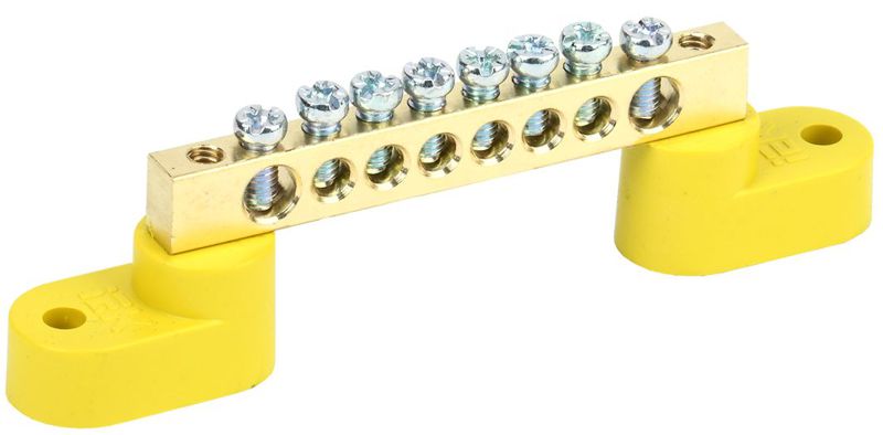 Шина PE "земля" ШНИ-6х9-8-У2-Ж на двух угловых изоляторах IEK YNN10-69-8C2-K05
