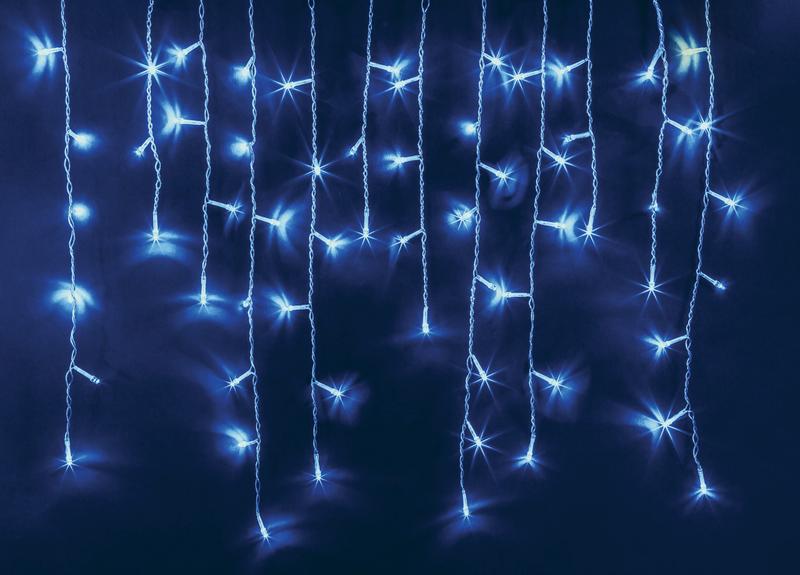 Гирлянда «бахрома» 2 х 0,5 метра Размер: 2 х 0,5 м (Общая длина с проводом 3.5 метра) Количество светодиодов: 100 шт. Расстояние между светодиодами: 8 см Соединение в линию: до 5 гирлянд Тип провода: морозостойкий, прозрачный ПВХ