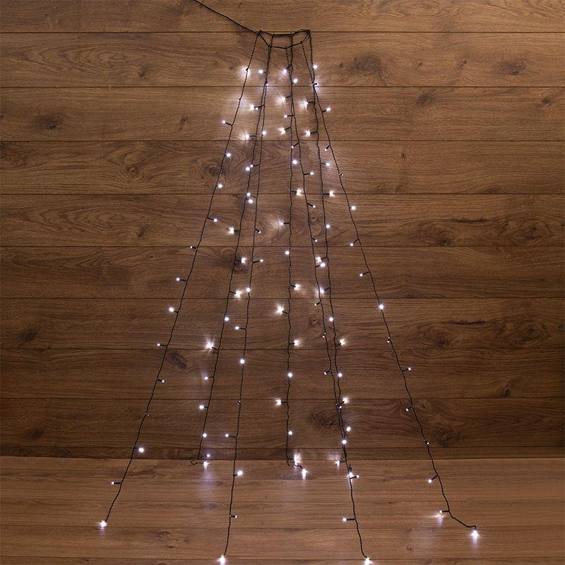 Елочная гирлянда с кольцом и 7 нитями по 1,8 м — это эффектное украшение новогодней ели, которое устанавливается буквально за минуту. Конструкция выполнена в виде кольца, к которому крепятся отдельные отрезки провода со светодиодами. Достаточно поместить кольцо на вершину елки, распределить нити между ветками или оставить их свободно свисать — оригинальный декор готов. 126 светодиодов излучают белый свет, имитируя сверкающий иней, и меняют режимы при помощи контроллера. В устройстве управления предусмотрено 8 режимов свечения. Гибкий шнур защищен изоляционной оболочкой из темно-зеленого ПВХ, длина питающего шнура — 3 метра.