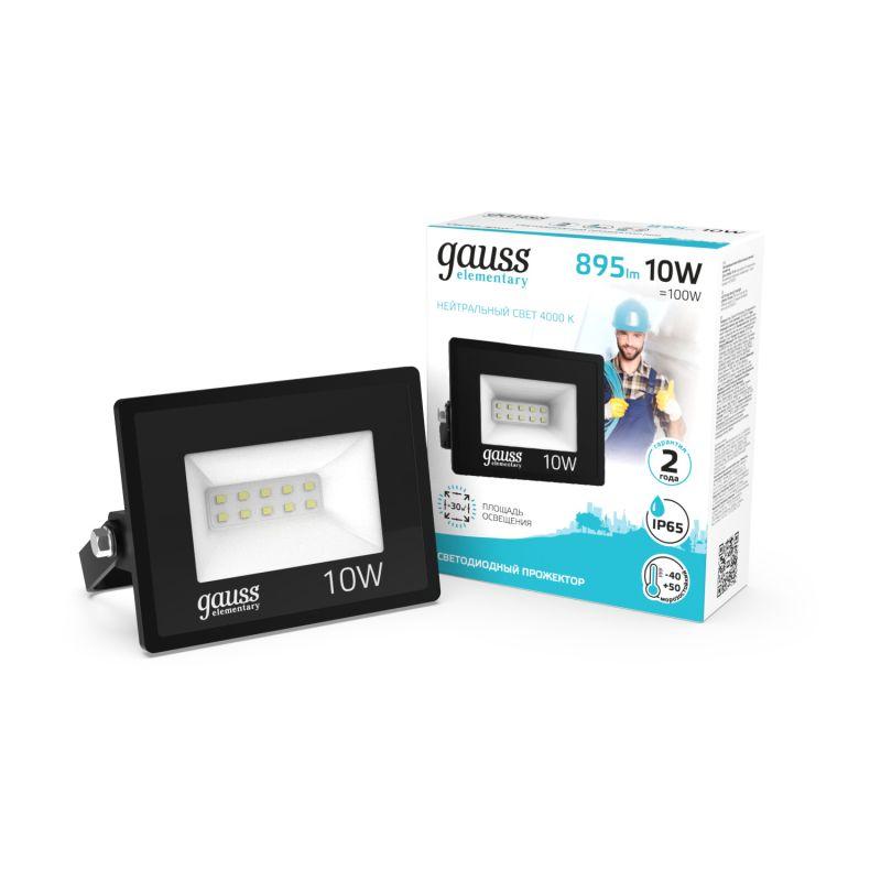 Прожектор светодиодный Elementary 10Вт 4000К IP65 895лм 200-240В ДО черн. GAUSS 613100210