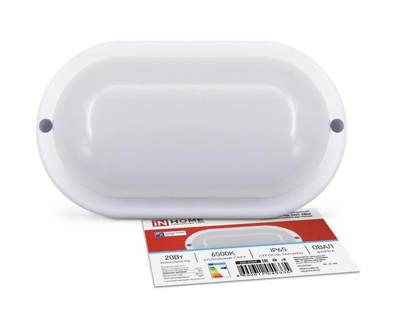 Светильник светодиодный СПП МД-2065-ОВАЛ 20Вт 6500К IP65 1800лм 195х94мм герметичный с микроволновым датчиком IN HOME 4690612049335