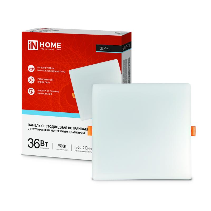Светильник светодиодный SLP-FL 36Вт 6500К IP20 3240лм 230В 226мм с рег. монтаж. 45-190мм встраив. безрамочн. панель бел. IN HOME 4690612041841