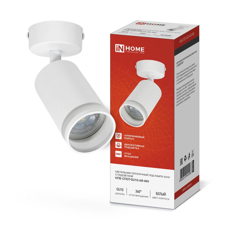 Светильник НПБ СПОТ-GU10-AR-WH 55х100мм потолочн. под лампу GU10 бел. IN HOME 4690612045566