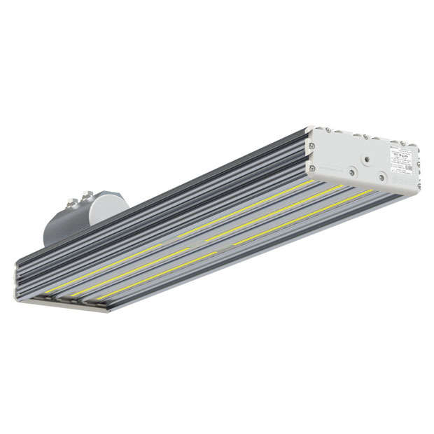 Светильник УСС-70/100 светодиодный взрывозащищенный (крепление на консоль) предназначен для обеспечения освещения дорог, улиц, дворов, площадей, производств, складов, железнодорожных платформ и т.п. Является энергоэффективным аналогом светильника с ртутными лампами ДРЛ-250. рекомендуется устанавливать в случае, если высокая надежность и весомая экономия являются приоритетными. Изделия не отмечается стробоскопический эффект, на полный световой режим светильник выходит за 1 секунду. Корпус светильника выполнен из алюминиевого профиля, обработанного методом анодирования. Светодиоды защищены с помощью прозрачного противоударного оптического поликарбоната. Крепежные элементы — из нержавеющей стали. В светильнике установлены качественные светодиоды японского производства, защищенные с помощью электронной системы от скачков напряжения выше 800В. Технические характеристики: • мощность светодиода — 16Вт; • количество светодиодов — больше 6; • рабочее напряжение — 220-230В; • степень защиты — IP67; • уровень взрывозащиты — 2Ех;