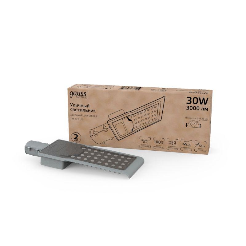 Светильник светодиодный Avenue 30Вт 5000К IP65 3000лм 190-250В 316х130х57мм ДКУ уличный консольный КСС Ш черн. GAUSS 629534330