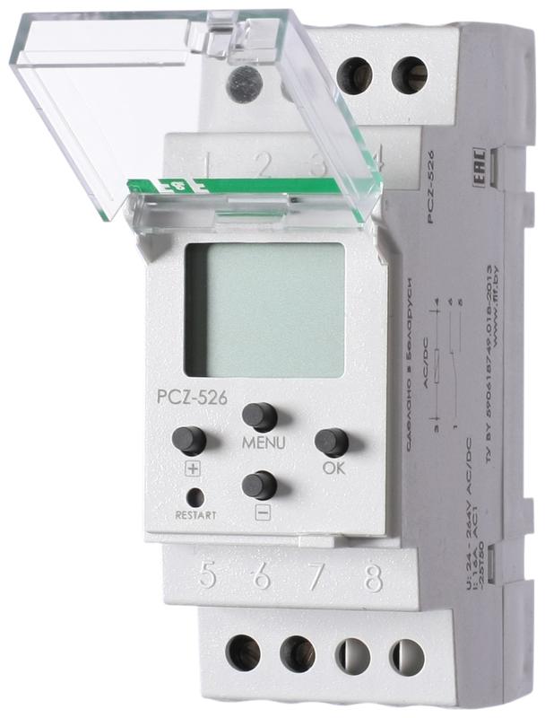 Реле времени астрономическое PCZ-526 16А 24-264В AC/DC 1п IP20 1 канал коррекция вр. включ./выключ. ночной перерыв годов. программа монтаж на DIN-рейке F&F EA02.002.009