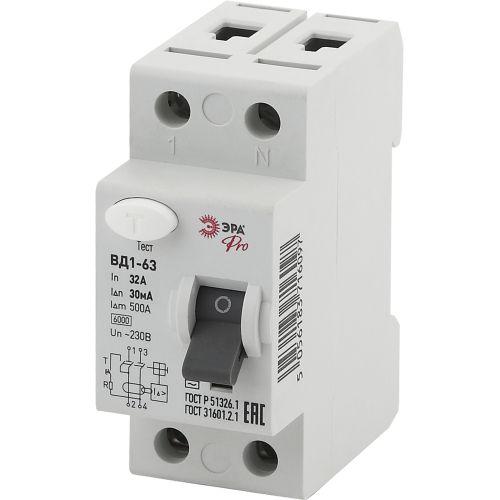 Выключатель дифференциального тока (УЗО) 1P+N 32А 30мА ВД1-63 Pro NO-902-27 ЭРА Б0031876